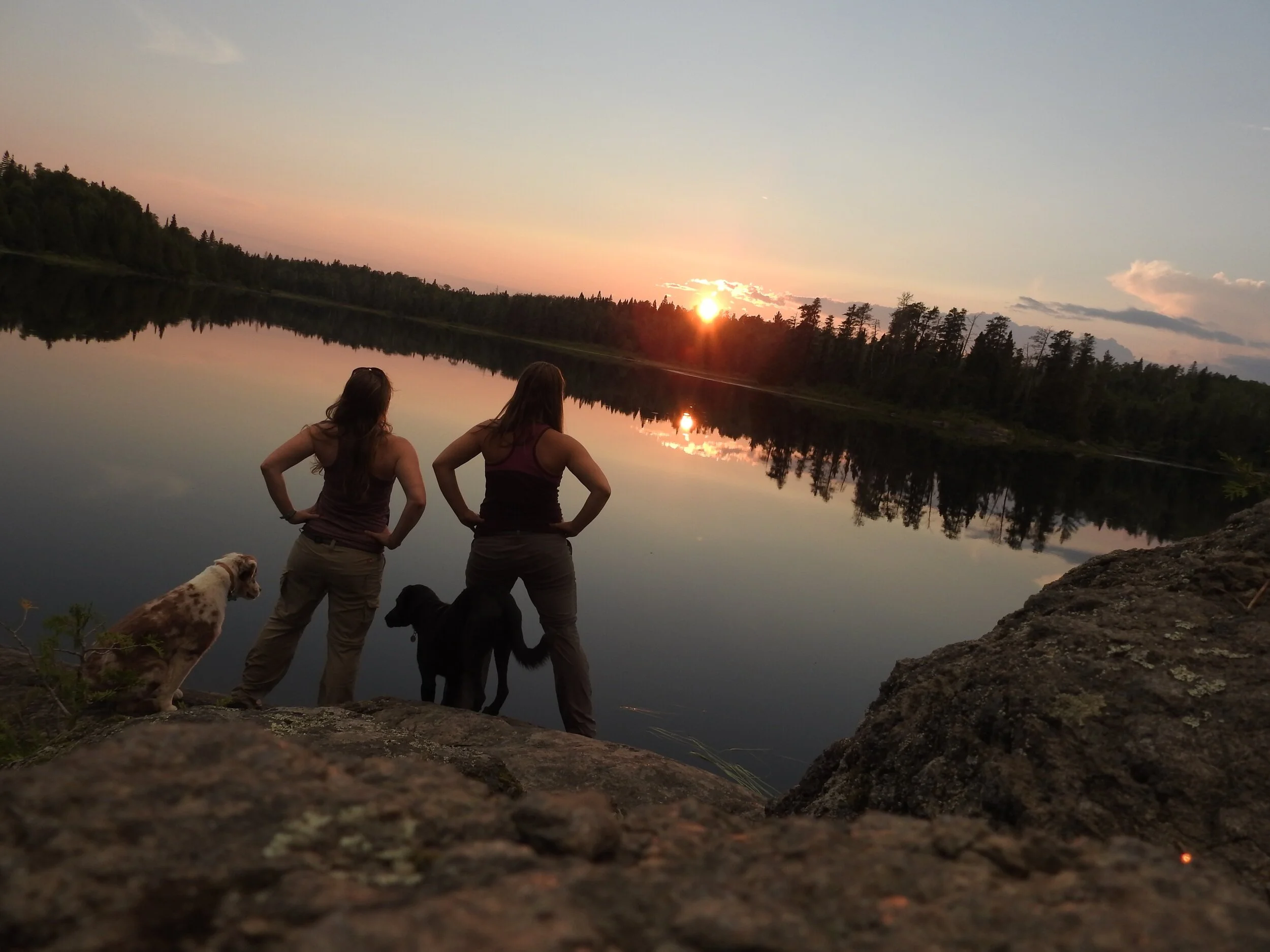 I can still clearly envision the most brilliant sunset I’ve ever seen in my life on Boot Lake - equipped with a stunning double rainbow. On that first trip, my confidence and contentment with the outdoors grew with each day. We learned so much about our love for the Boundary Waters, how to work as partners, and we solidified a very important lifelong friendship. Nora and I LOVED being out there in the wilderness with no one around but the two of us and her Australian Shepard Sigmund. We were giddy. That trip changed our lives forever.