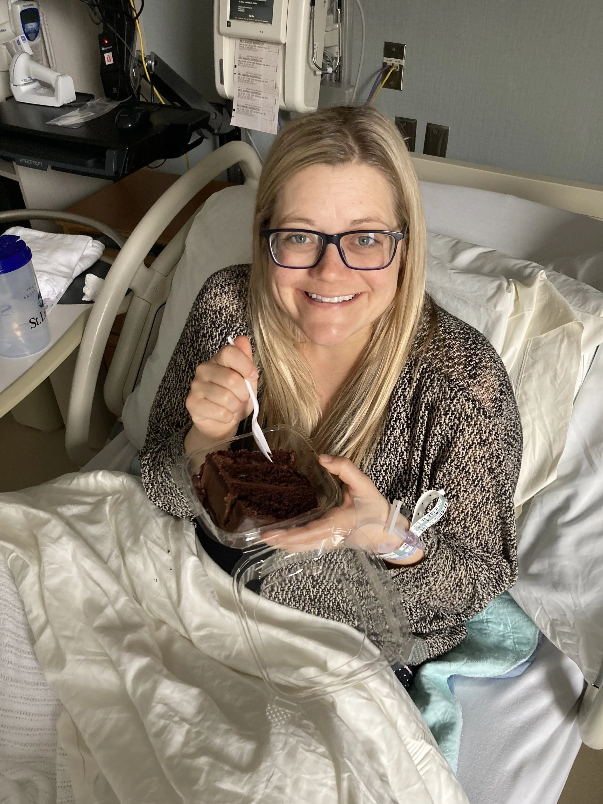 That evening Drew and I ordered Pizza Luce. The nurses were so kind and gave me a piece of cake. It was heaven after 5.5 of no carbs or sugar!!!