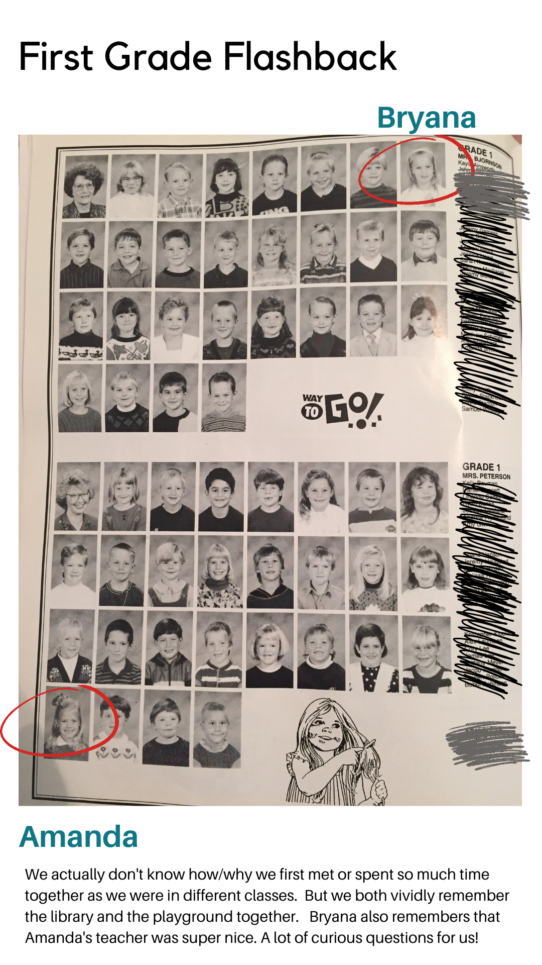 In fourth grade, Bryana moved to Mankato. We were penpals for years and visited one another in the summer. After college we ran into one another at a Christmas bar crawl. As it turned out we shared some mutual friends and lived a few blocks apart, in downtown St. Paul of all places. We walked the skyway system in our pjs to have downtime together after work. We’ve been inseparable since.