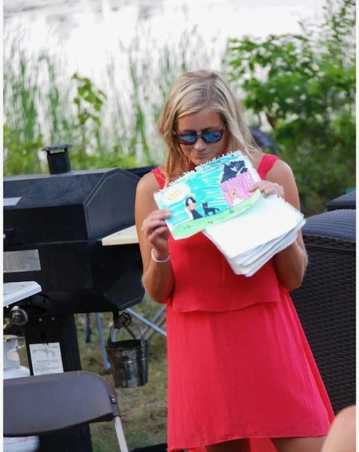 Amanda sharing some old letters and art Bryana mailed her during their childhood years as penpals at Bryana’s rehearsal dinner.