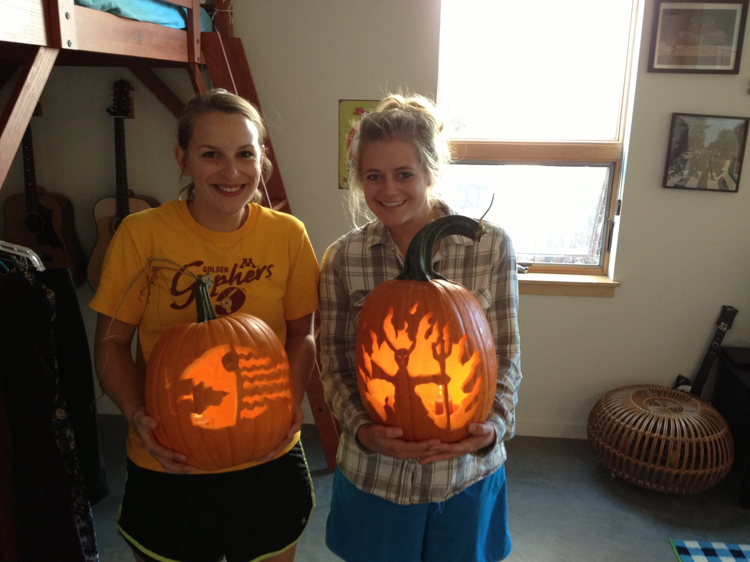 Bryana and Amanda carving pumpkins at Amanda’s St. Paul apartment.