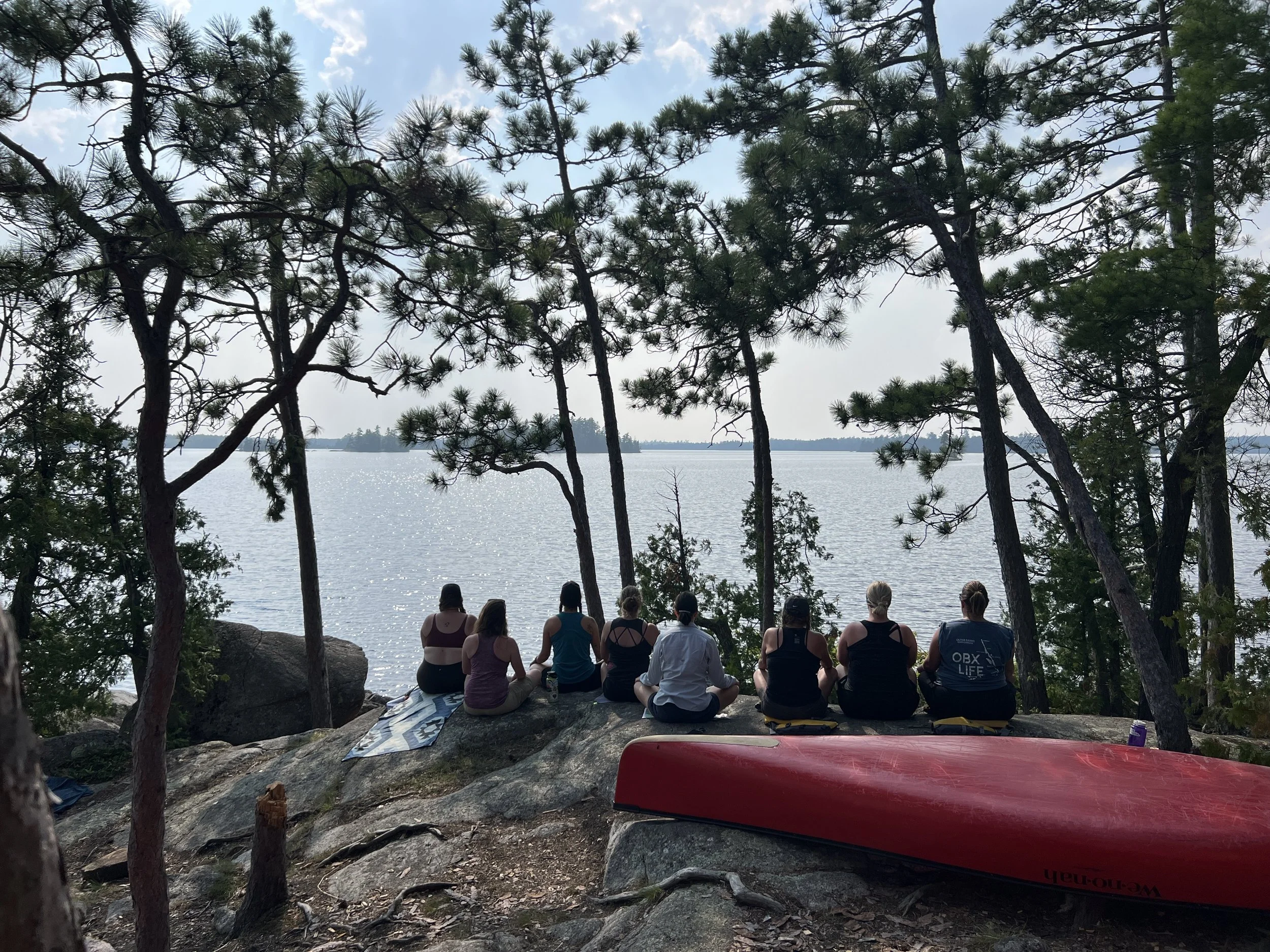 In the morning, we all enjoyed early yoga on the deck - the sunrise peeking through the boreal forest. Followed by hot breakfast, and then… canoe trips and/or rock climbing!