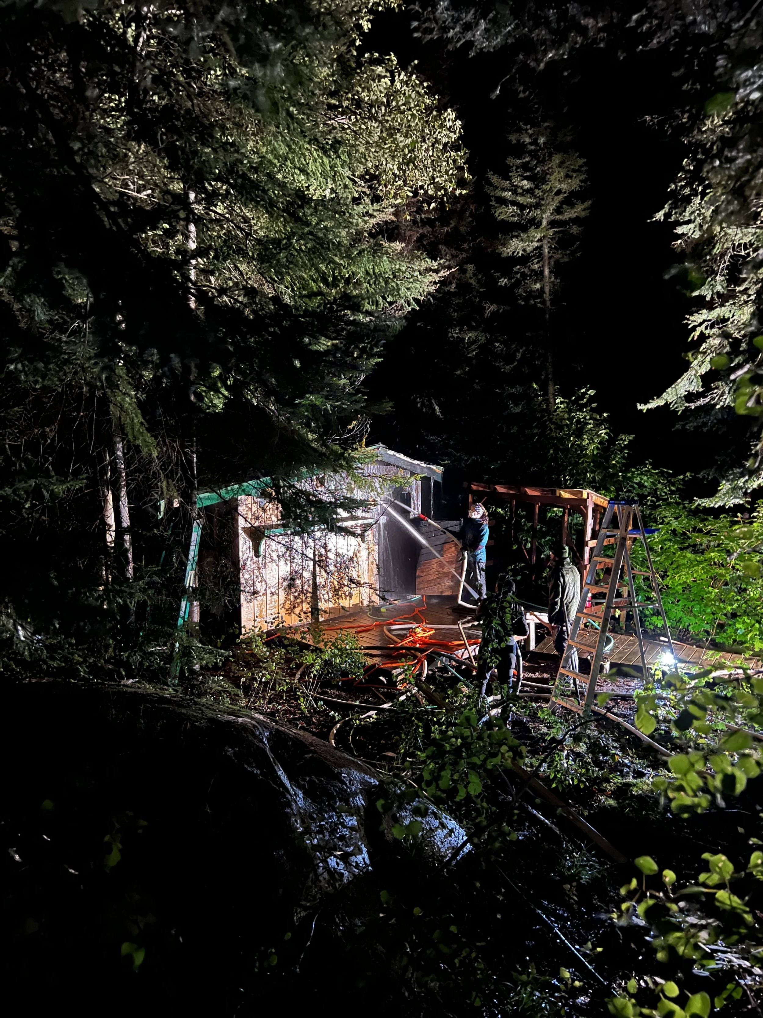 All Birchwood and Boreal Bliss folks pitched in together to put the fire out. The volunteer fire department came via boat across the Seagull River too! Watching them get to work in remote conditions with fire hoses in the river + generator was fascinating and impressive.