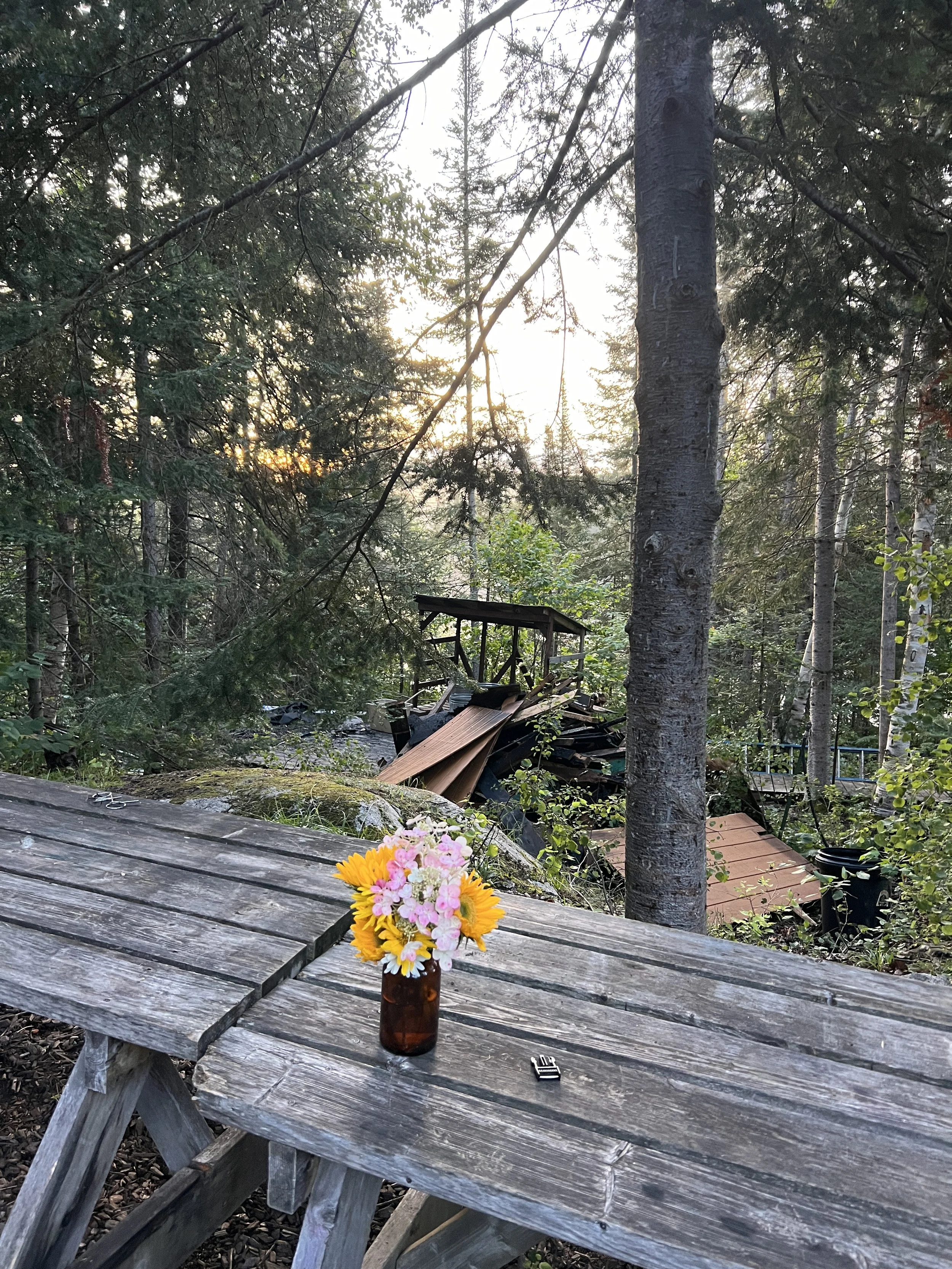 The next day we reluctantly had to say our goodbyes. We said goodbye to each other, Birchwood, the BWCAW, and the charred sauna remains. What a memorable retreat, for so many reasons. We all embraced the spirit of Birchwood, the boundary waters, and the concept of being fully present. We left that retreat changed in so many ways. The lessons will continue to unfold in the coming days, weeks, months, and years.