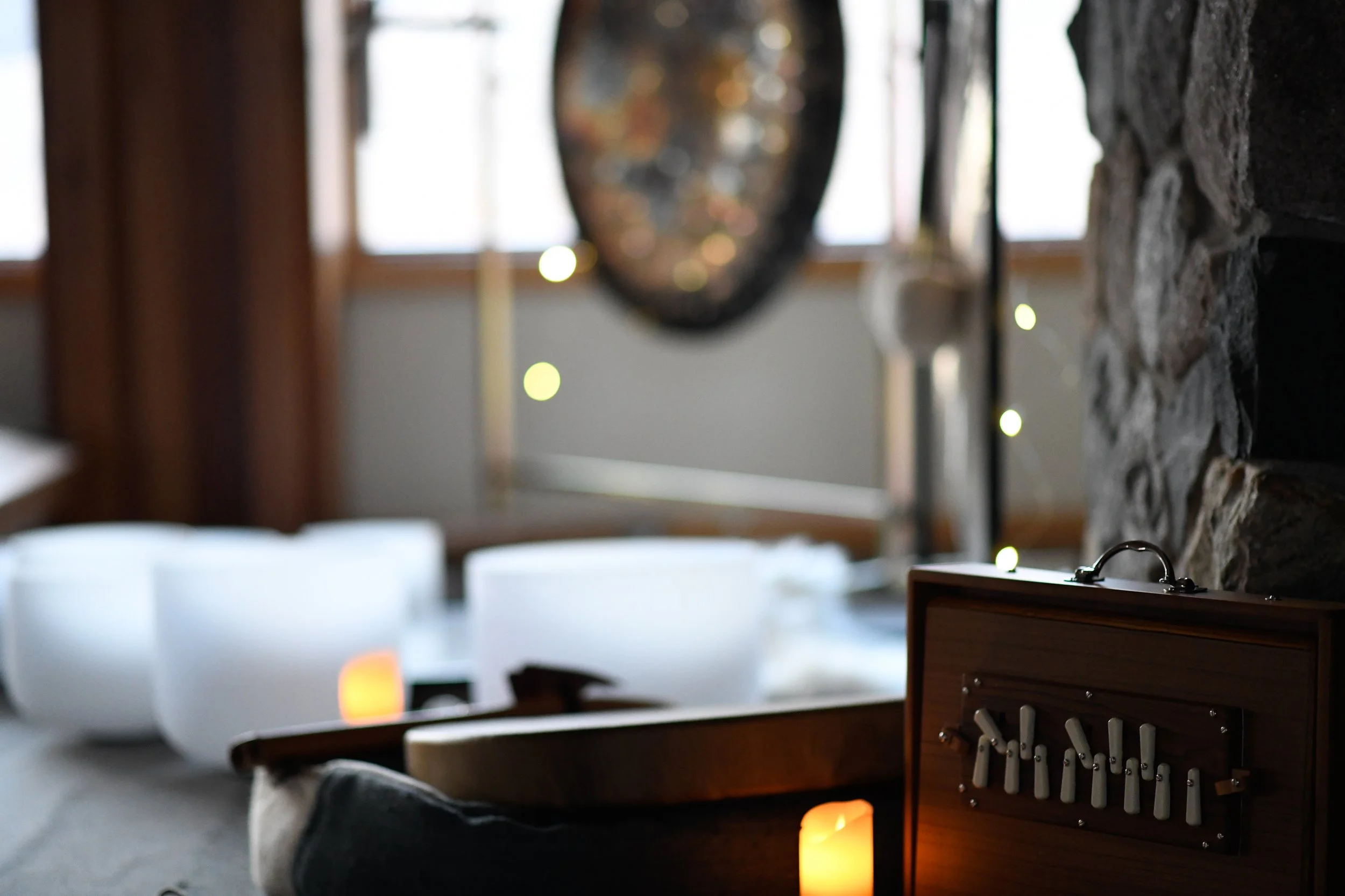 Evenings invite connection and calm. From a relaxing sound bath & yoga nidra session to winter campfire under the stars to moments of stillness with local tea in hand as snow falls quietly outside.