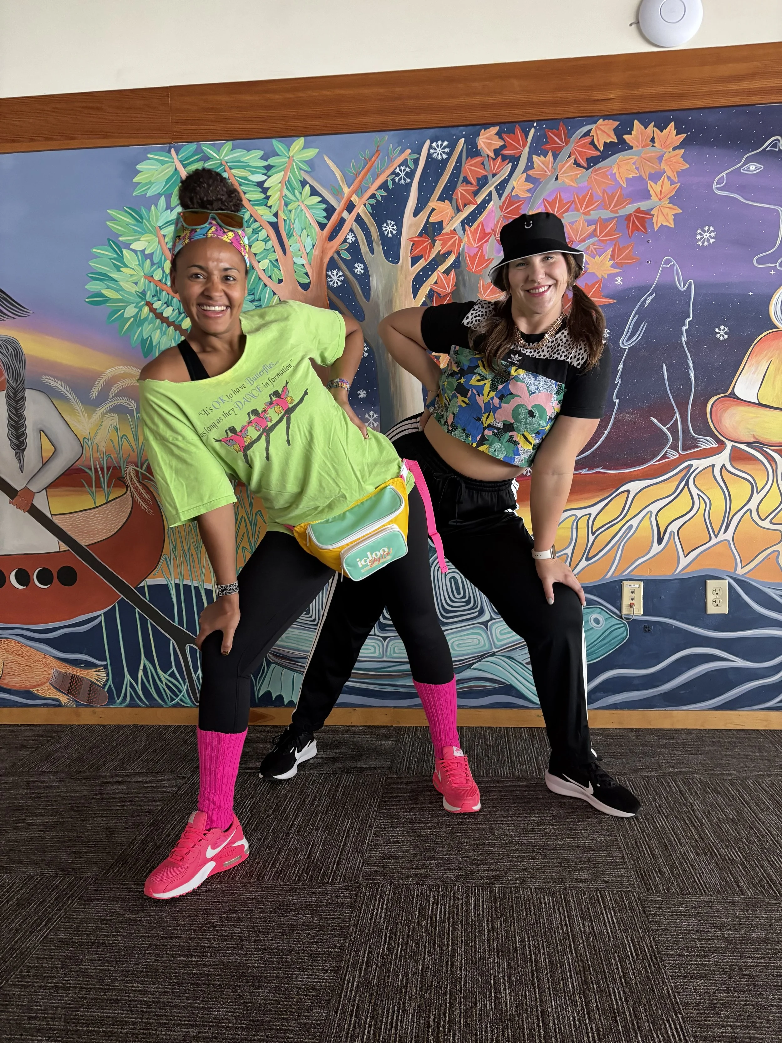 We wore neon, side ponies, scrunchies, and slap bracelets and busted a move. To be honest, I was pretty impressed with how well we all did with the coordinated dancing, which is of course only possible because Tiana and Lindsey were excellent teachers. Tiana called it a party without the hangover and it delivered.
