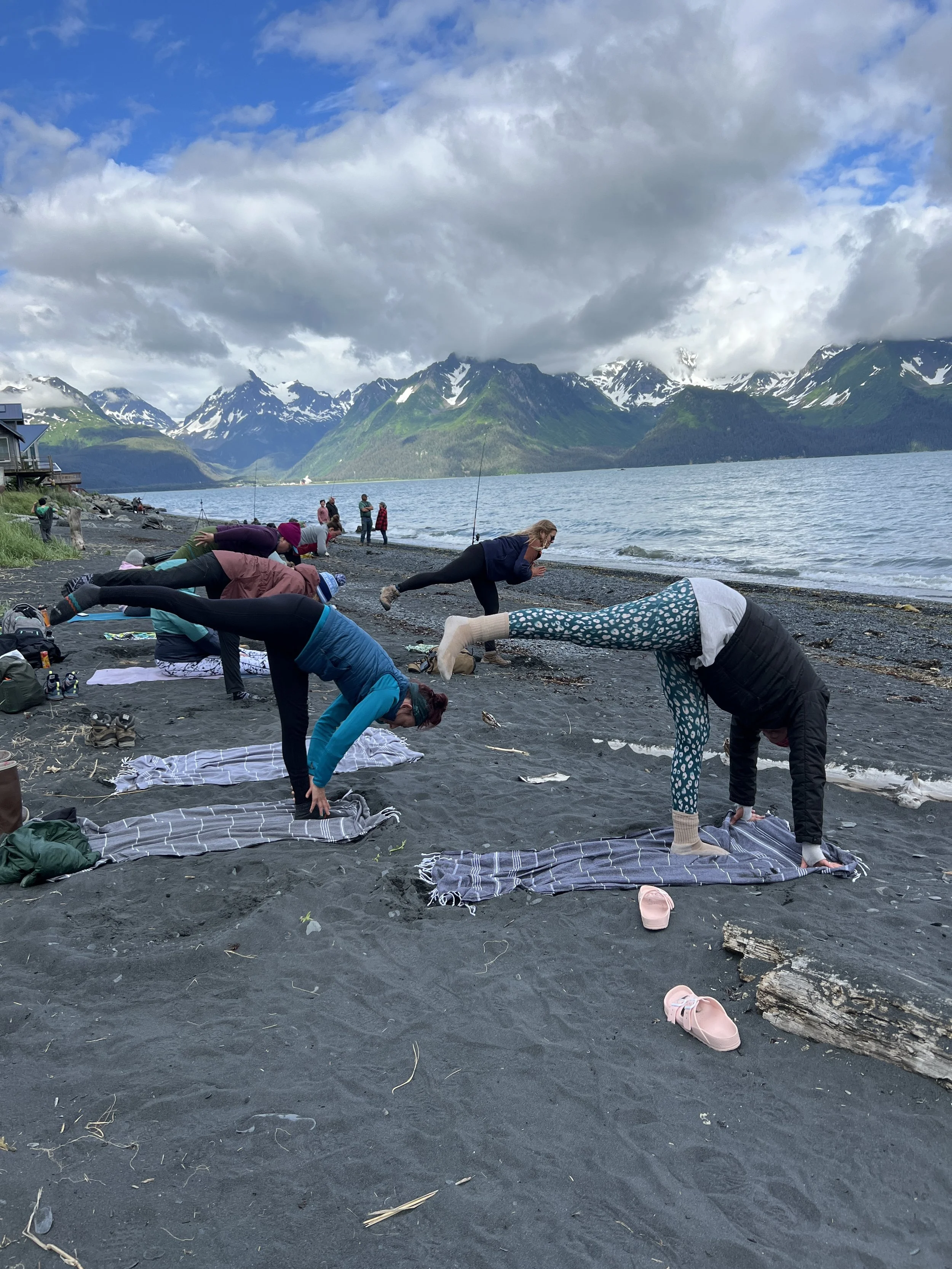 That evening I decided to teach yoga on the beach. It wasn’t overly nice out… foggy and low 50s, but hey, when in AK, you must take what you get!