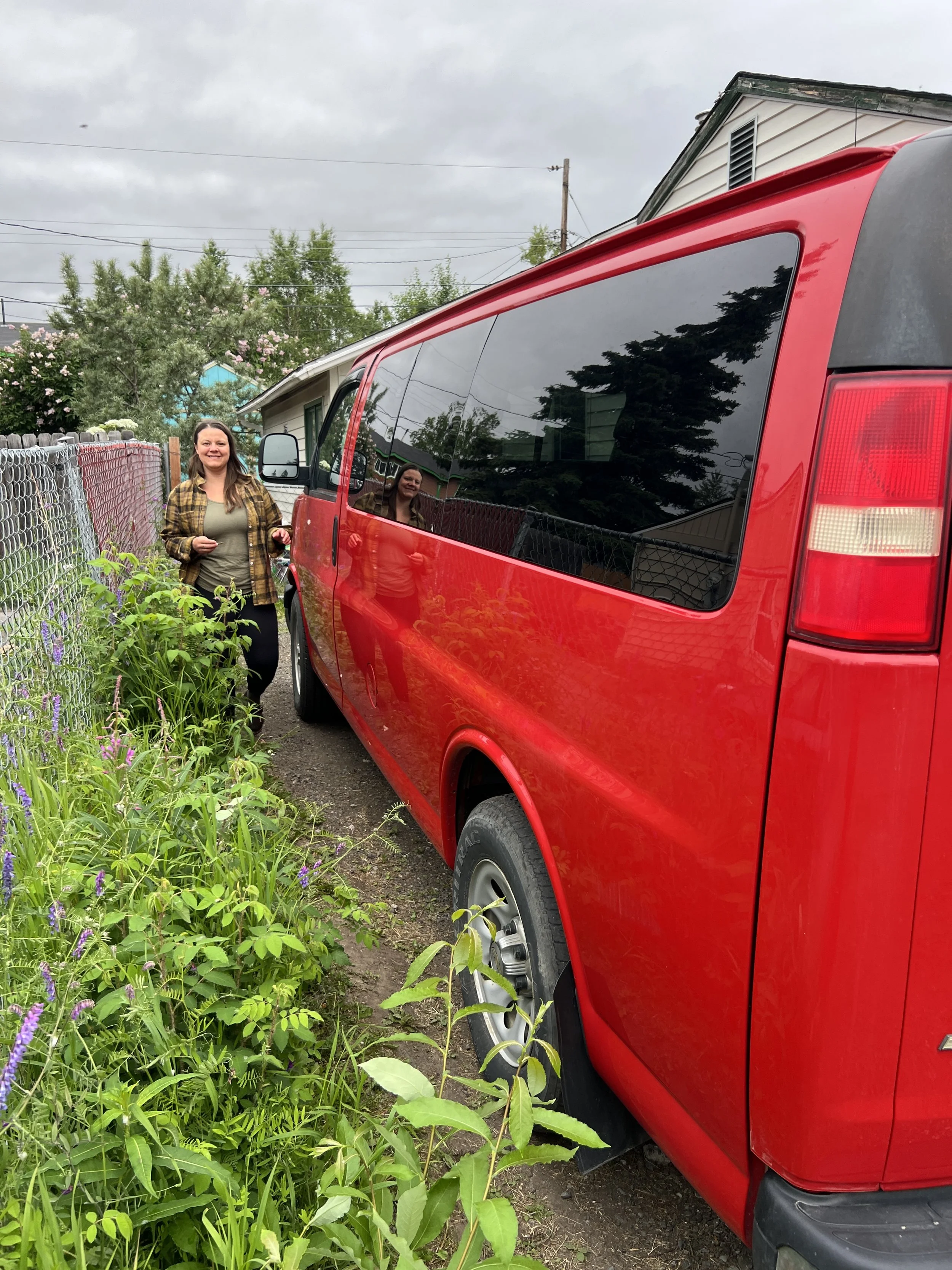 Stacy was the expert driver of our large red 8-passenger van. We rented the van from a man in Anchorage and to our great delight, it came with a ukulele and a guitar! Stacy was so adept at driving this big beauty, she even parallel parked it with ease. Wow, what a lady.