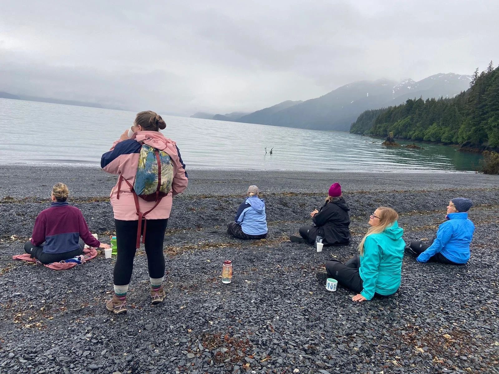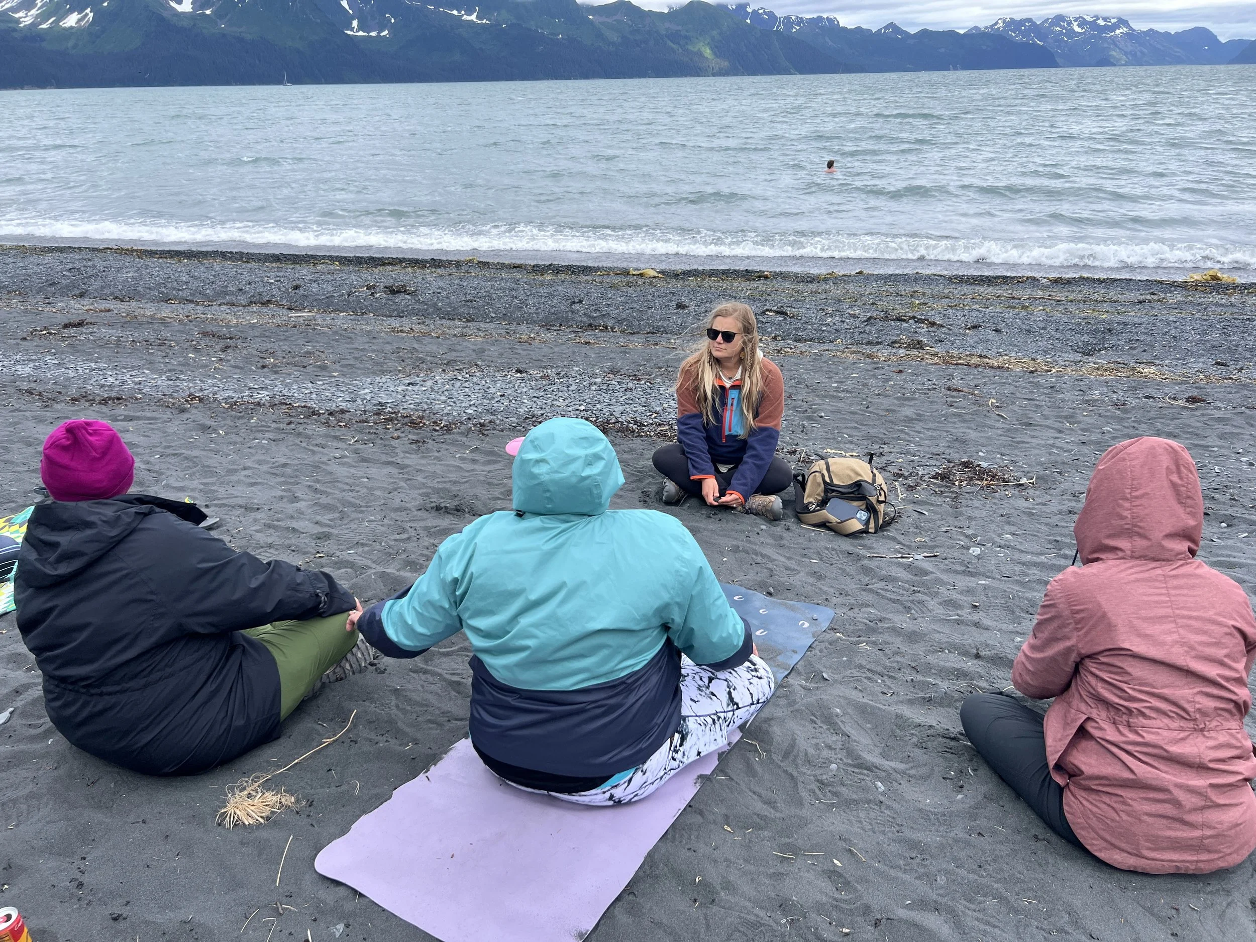 On our first evening, we gathered on the shore of Resurrection Bay for a welcome circle while we watched sea otters and seals frolic about. Once the introductions had been made, Bryana had a special announcement.