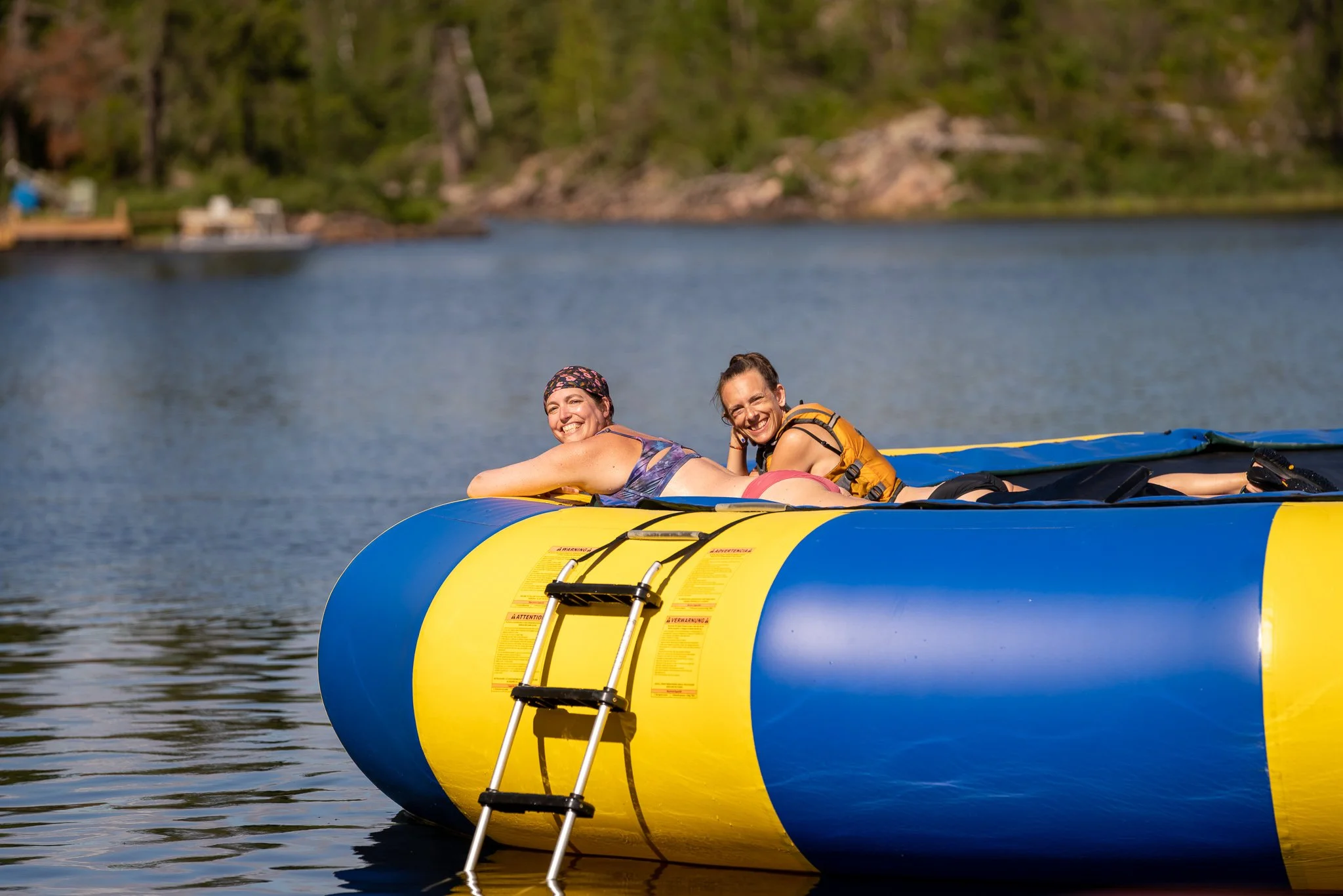 3 nights, 4 days lodging, showers/flushing toilets, meals (v, gf, df options), drinking water, tea/coffee, yoga, specialty workshops, meditation, journaling, camp activities, BWCAW day trip + gear, hiking, canoe, rock climbing, campfire, sauna, swimming, waterfront activities (giant waterslide, river swing, water trampoline, log roll), relaxation, wildlife, and adventure!