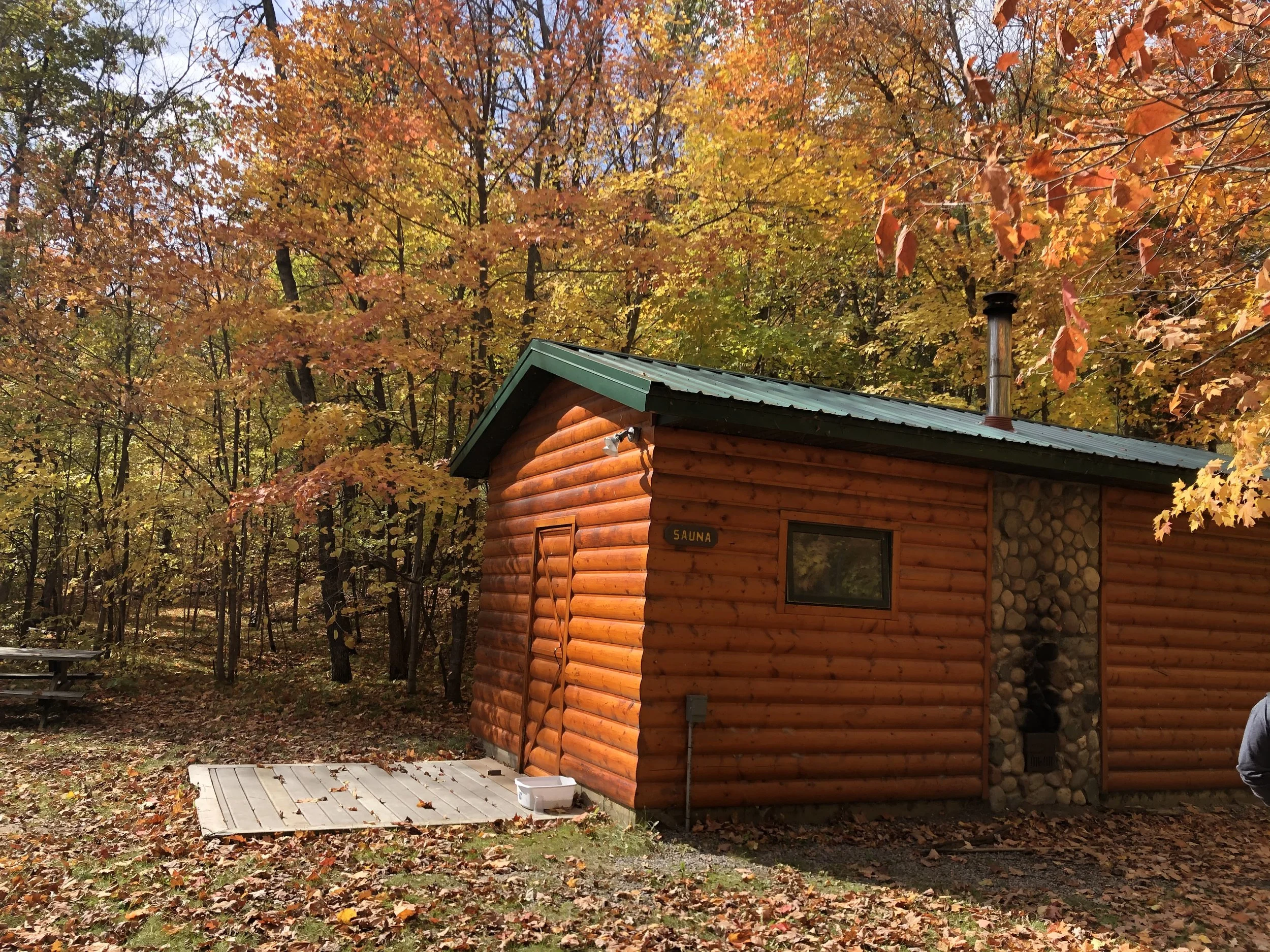 Lakeside Sauna: a picturesque wood-fired sauna experience. Cold plunge into beautiful Little Boy Lake!
